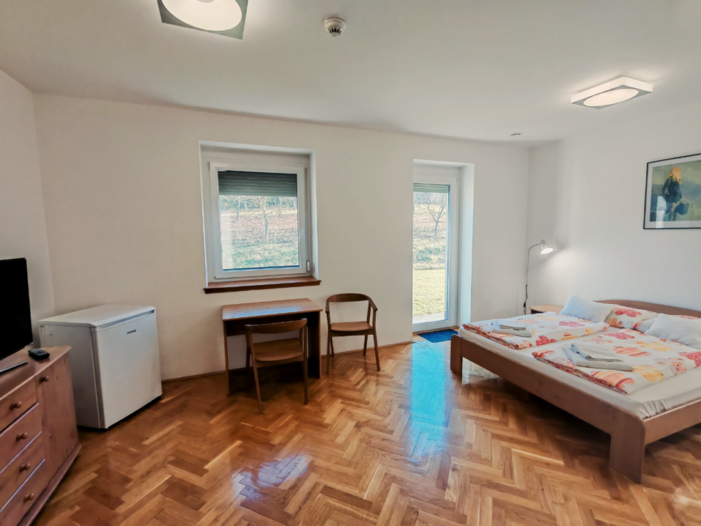 Kényelmes és tágas franciágyas szoba kilátással a saját kertre, továbbá a varázslatos Bükkre.