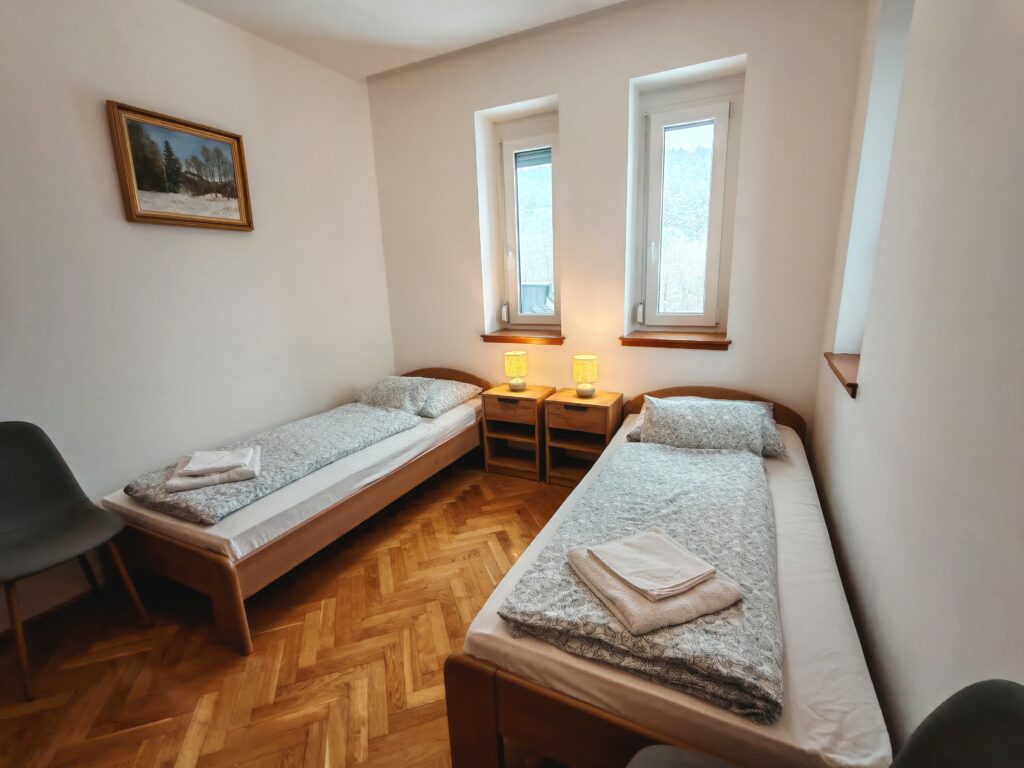 Két különággyal berendezett, világos és friss hangulatú szoba – tökéletes választás barátoknak vagy családtagoknak.
